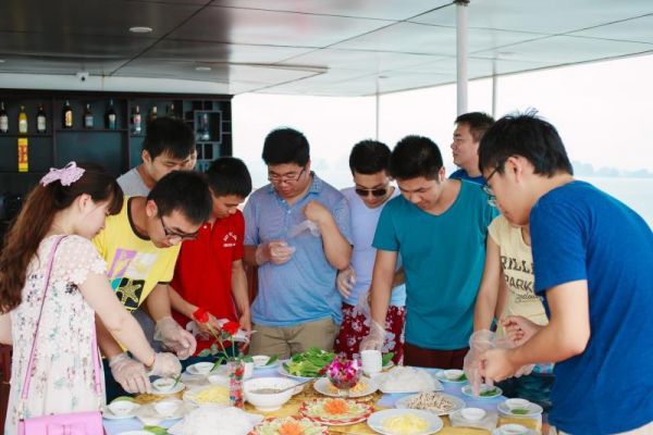 Cooking class, taichi and other tours are included during your time in Halong Bay with this cruise.