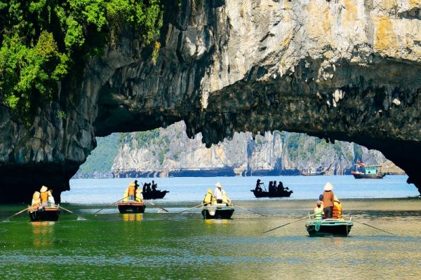 15.10- 16.00 Visiting Luon cave, the perfect combination of limestone mountains and jade-green sea by bamboo boat with local people. Enjoy quiet space and pure air, you will feel relaxed truly. If you are lucky, you will see monkeys on islands.