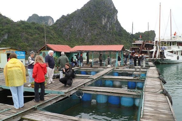 16:00 Visiting Halong Pearl Farm Village. Travelers will have a chance to visit Floating Pearl Farm and see how local people produce the great pearls. This Pearl Farm Village was established in 1995 by a Japanese organization, after years run by Japanese experts, it was transferred for Vietnamese. Our guide will show you around the farm and the museum there and explained how the process is done. You will pass a floating raft where some kinds of oyster pearls are grown and transplanted such as South Sea pearl, Tahitian Black Pearl,…etc. After that, you will see a processing room where workers transplanting oysters and understand some precious species of pearl. The last, you could see one of the workers here opening an alive oyster in front of your eyes to see pearl inside and then have to look their achievement in the showroom!