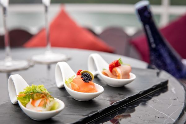 12:30 President Cruises’ electric car will be transferring you to the boat, where you will be given a cruise briefing by your personal butler and sipping your welcome drink in the Piano Lounge.