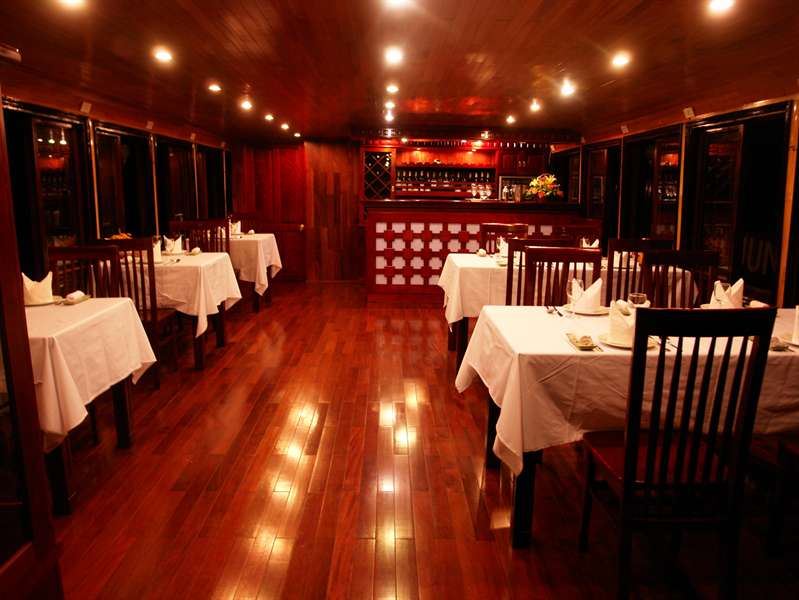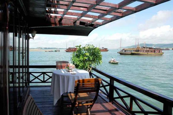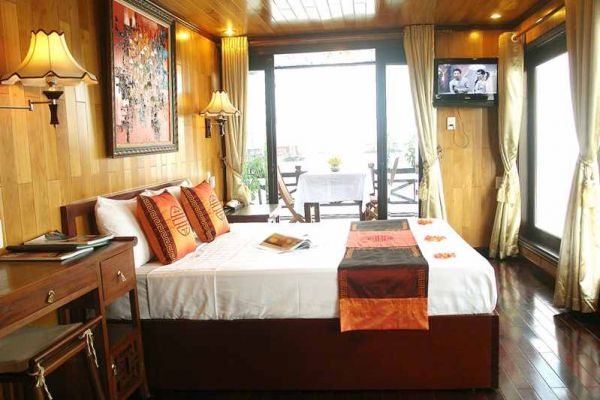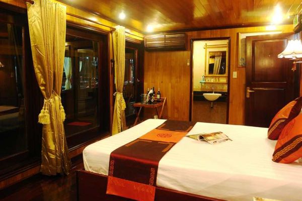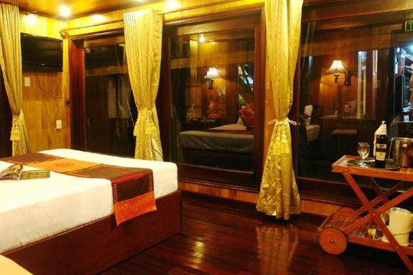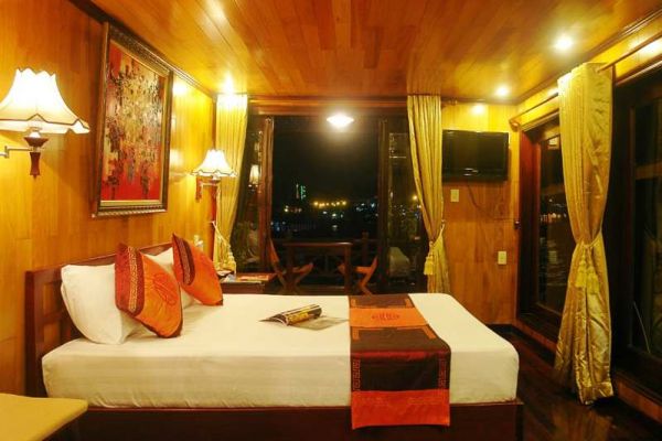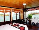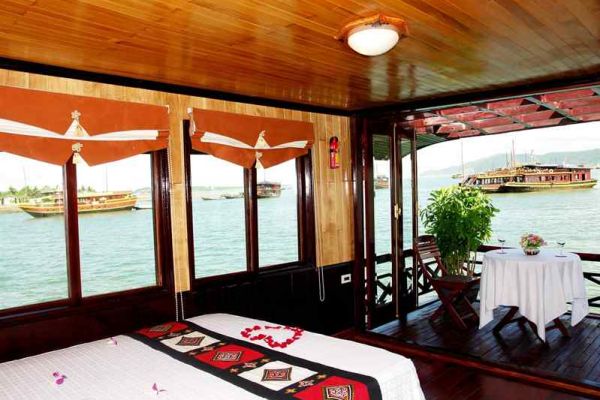 Annam Junk is a group of traditional junks, modeled after the old style of Vietnamese junk in 14th century in Halong Bay. They are built and designed by Halong Travel company. There are 5 Junks of different types including junks of 5 cabins, 6 cabins, 8 cabins, 9 cabins and 11 cabins. Each Junk comprises restaurant, high standard rooms with private bathroom, balcony, air-conditioner, and mini-bar. All rooms offer sea view through large windows.