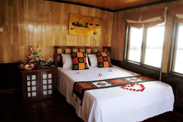 21:00: Leisure time : Film entertainment in the dining room, join squid fishing from the boat with our crew. Retire to your cabin and stay overnight on Boat Annam Junk