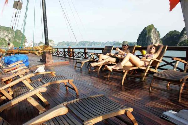 13:30-15:30: Cruise to majestic Halong Bay and admire several landscapes of the Bay like Dinh Huong island, Duck Island, Dog Island, Sail island. Annam Junk will bring you to explore Halong Bay on the most wonderful route where just a few cruises go through.