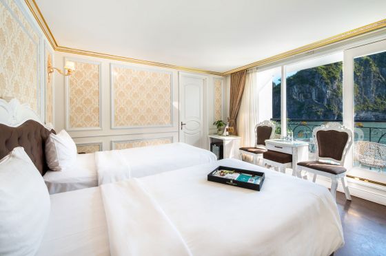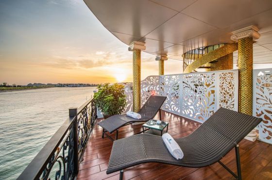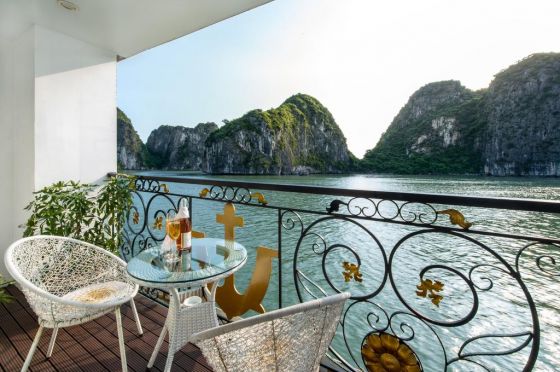 Dynasty Cruise is designed in royal style combining classic elegance and nobility with deep wood furniture. Consisted of 22 cabins with restaurants, spa and bar, Dynasty is impressive in each thoughtfully and meticulously designed detail. Each cabin is sophisticatedly designed, fully equipped with high-end furniture and has a separate balcony for sightseeing and enjoying the wonderful natural scenery of Ha Long Bay. A cozy restaurant space, a diverse drink menu and an international standard spa system all make Dynasty outstanding, promising to bring satisfactory and memorable experiences for tourists in their trip to discover Ha Long natural wonders.