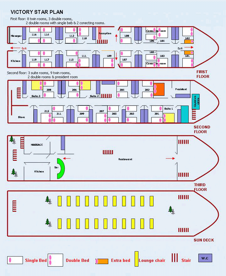 Almost cabins of these cruises with private balcony but Suite cabins and President Suite cabins are brilliant with spacious, modern and big window.