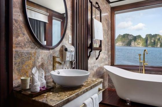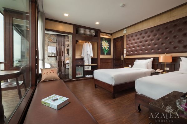 Azalea Cruise halong bay is one of the newest cruises in Halong Bay, this cruise visits three bays: Halong Bay, Bai Tu Long Bay, Lan Ha Bay and Cat Ba island.
