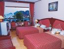 All cabins of this cruise with private balcony, there are many types of cabins: single, double, twin, family.