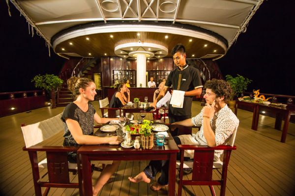13:30 – 14:30: Set menu lunch served in the outdoor dining room (depending on the weather) while cruising into magnificent Bai Tu Long Bay; admire the fascinating limestone karsts on the way.