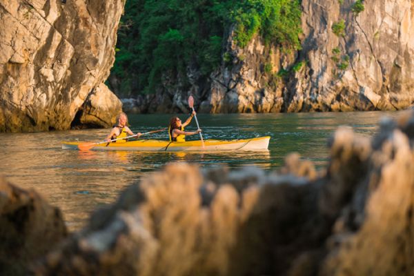15:00 – 17:00: Cruise to Vung Dang – Cong Dam area: Swim or relax on a white sandy beach; Go kayaking through the mystery Karst Mountains in Vung Dang area.