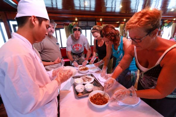 13.30: Delicious Vietnamese set menu while leisurely cruising to the core of Halong Bay.