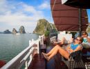 13.15: Enjoy lunch with sampling regional fresh seafood while cruising on exquisite water, passing Incense Burner island, Fighting Cock islet, Stone Dog… Lavender Cruise will bring you to explore Ha Long Bay on the most wonderful route where just a few cruises go through.