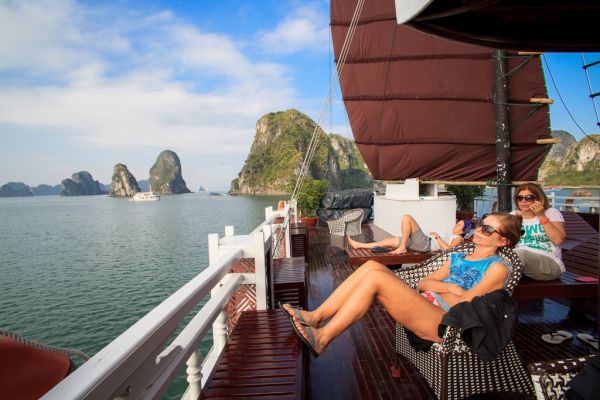 & swimming or just relaxing on the sun-deck for fantastic views at Hoa Cuong floating fishing village
