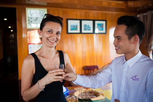 12.00 – 12.30: Arrive at Tuan Chau marina harbor. Embark on Lavender Cruise followed by a short cruise briefing and enjoy welcome-drink. Check in the cabin.