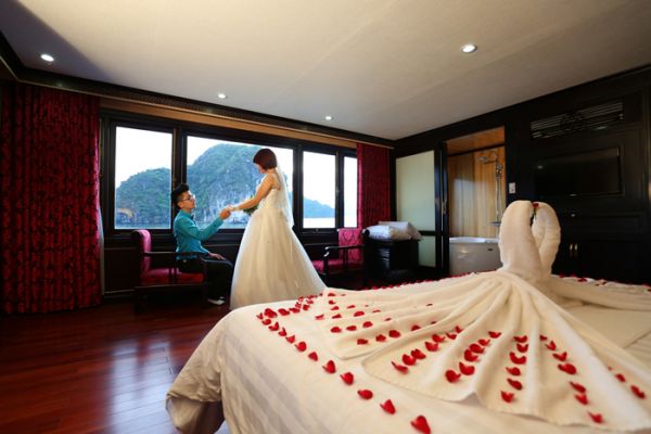 Halong Starlight Cruise is a luxurious cruise that also visits Bai Tu Long Bay. With 32 luxurious cabins(almost cabins without balcony but Suite). All cabins are spacious, modern and big window where you could enjoy great views from your cabins.