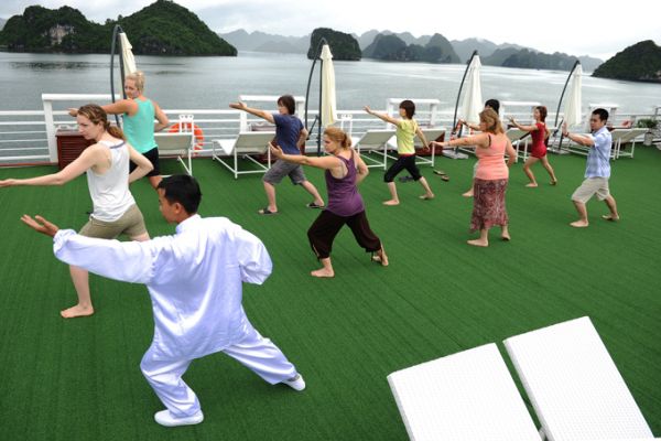 07:00 – 09:00: Catch morning view of seascapes with a cup of tea or coffee, have breakfast while cruising toward Thien Canh Son Cave