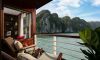 17:30 Back on Heritage Cruises, enjoy life aboard the vessel or in your suite, and with cocktail in hand watch the sunset over the Gulf of Tonkin.