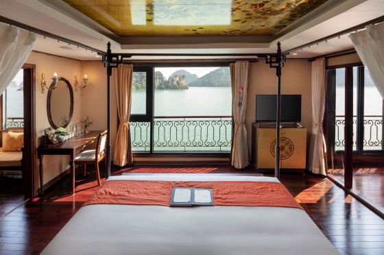 Indochine Cruise visit Lan Ha Bay and a part of Halong Bay, it is a 5* new mental boat built-in 2019. It was created with a combination of contemporary luxury with traditional Indochinese maritime heritage. Additionally, Indochine Cruise is equipped with a luxurious interior and exterior décors such as the quaint wooden furnishings, exquisitely sculpted patterns, and fabulous wall décor evoking the colonial period of Vietnam