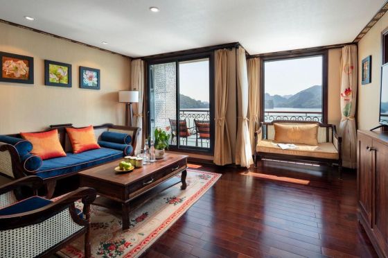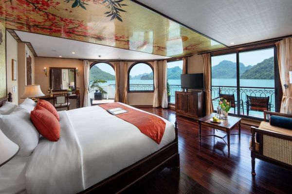 This cruise has 36 elegant and comfortable suites with large private balconies overlooking the spectacular views of the bay. Moreover, the ship is created with the highest level of international standards, ensuring optimum comfort and safety. Indochine Cruise features a dining room, bar, rooftop sundeck, fully furnished cabins. Spa services and Jacuzzi pools are also available. Together with professional and friendly staff, Indochine Cruise promises to bring unforgettable memories to each.