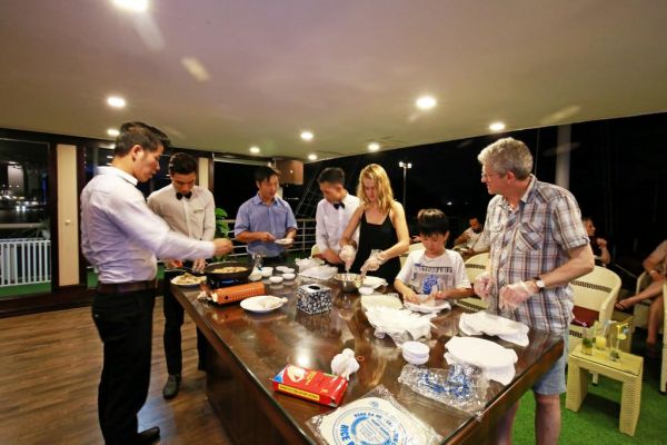 Explore one of the largest and the most beautiful caves on Halong Bay. Nothing is more enjoyable than free kayaking on the vast sea, and exploring the natural beauty of many Islets. Moreover, you will also have a chance to join our Cooking class to challenge your skills in preparing a very famous Vietnamese dish - Spring roll.
