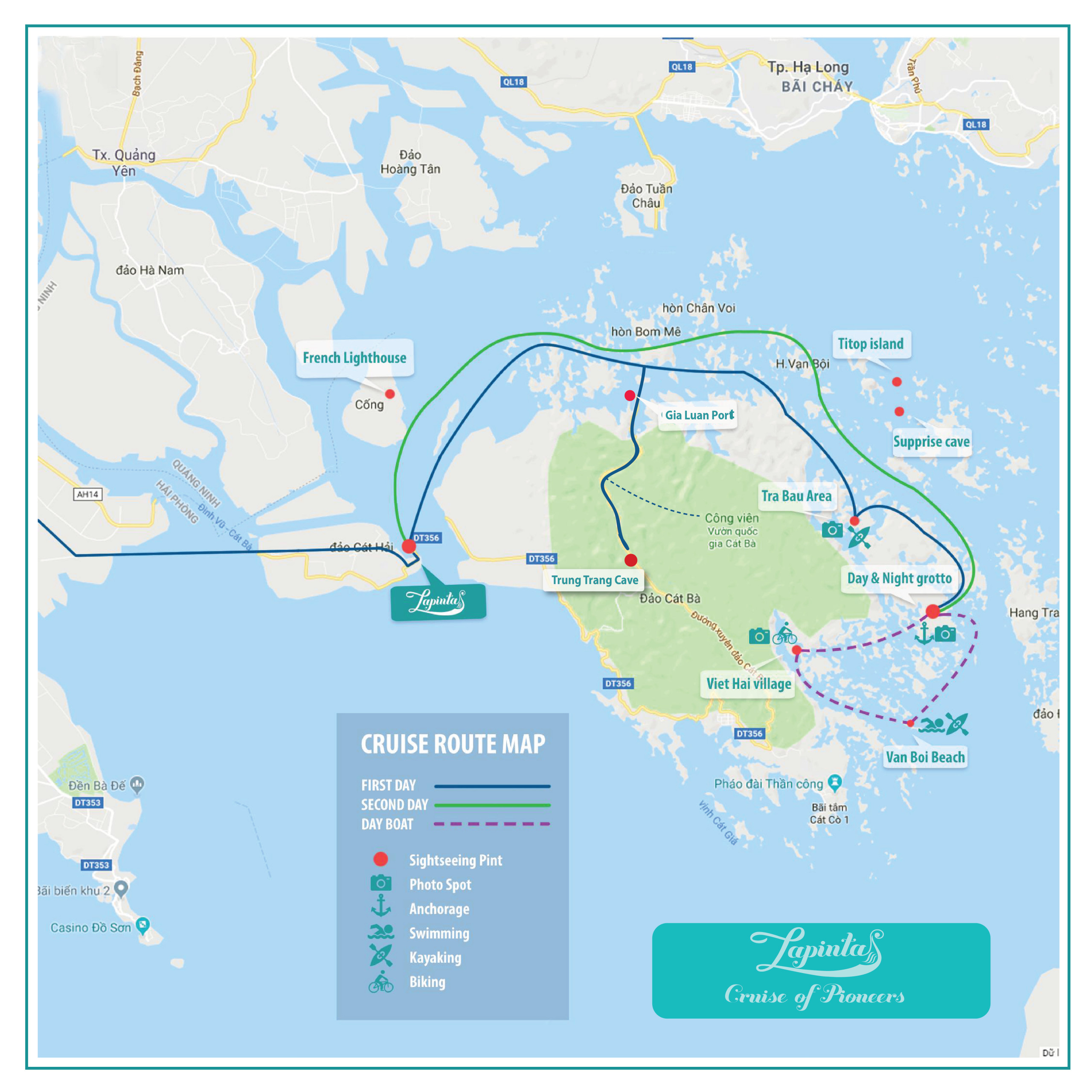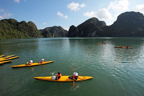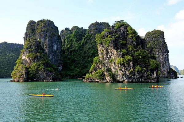 17:00 La Pinta Cruise gets in the less populated area at Tra Bau area where is located in Lan Ha Bay. You will enjoy the green emerald and cool water by swimming & Kayaking…