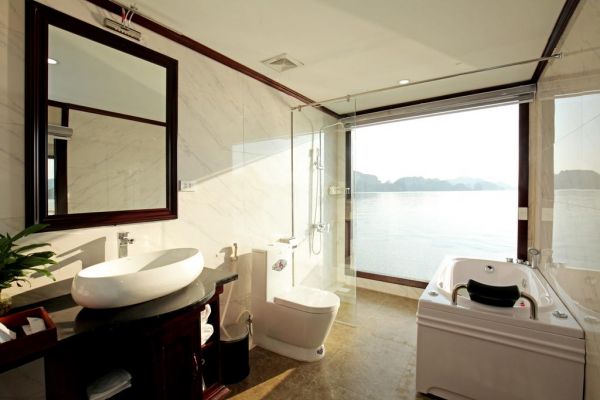20:30-23:00 After finishing dinner, you could view the bay at night up on the top deck, relax with romantic music, enjoy drinks from the bar while watching Top Gear Vietnam Special - a TV series by BBC or try your luck at squid fishing. Or you could also grab some drinks and have your leisure time outside your cabin private balcony. Overnight on board.