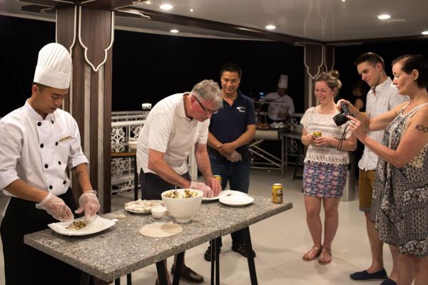 18:30 Join our Cooking Class on sundeck with the Chef on boat and learn how to prepare one of the most iconic dish of Vietnamese cuisine.