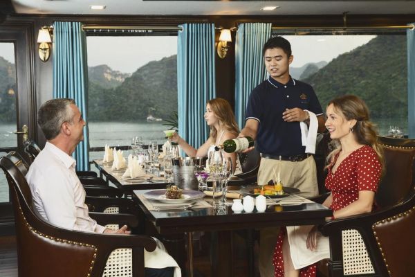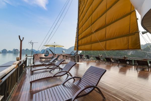 12:30 Let your vacation start with a welcome drink and wet towel during the time that our Cruise Manager introduce the safety briefing. The boat start to cruise to Lan Ha bay.