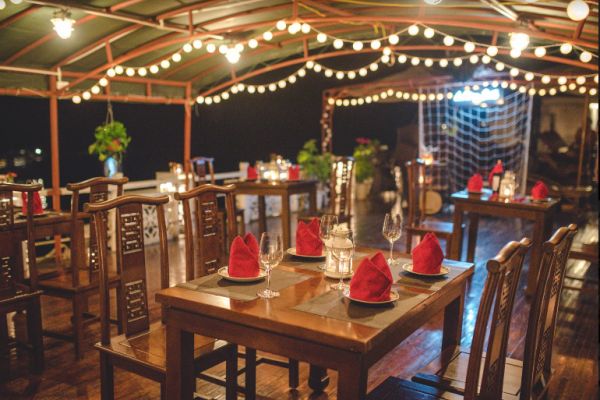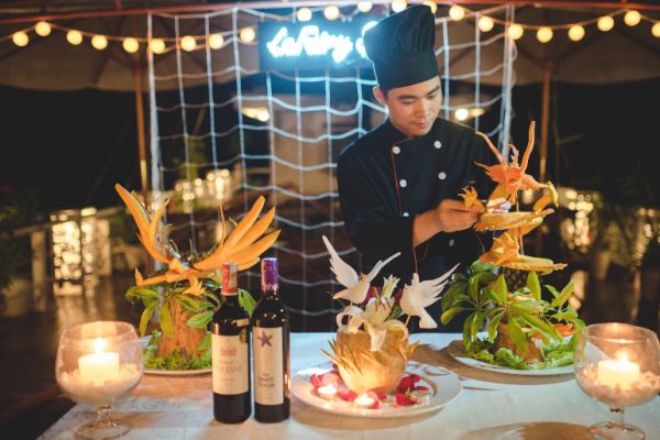 19:00 : Savor a sparklingand dreamlike dinner on top deck under the light of a thousand stars in middle of the tranquil Bay with extremely delicious food and be awed by a fascinating fruit and vegetable carving show. Delight in traditional music performances. Afterwards, socialize with the artist, new friends and crew members, join squid fishing. Overnight on-board.
