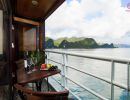 Magenta Cruises continues her sail to Cat Ba Island, passing amazing karst towers. Light breakfast is served with fresh air and peaceful surroundings.