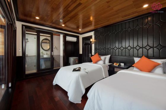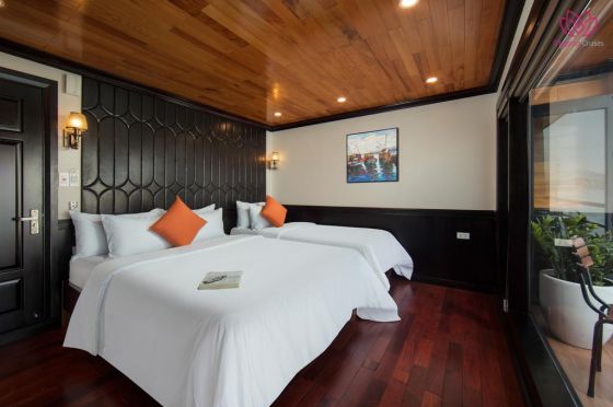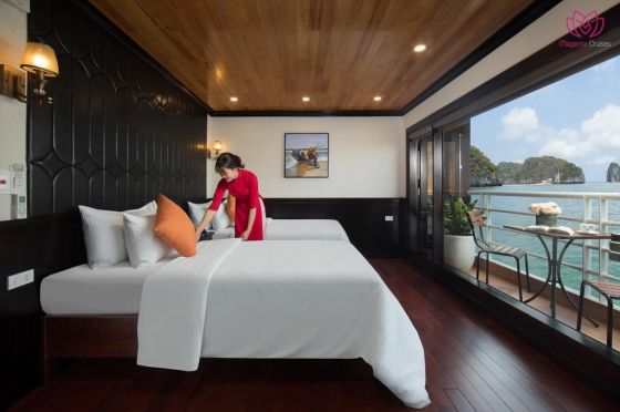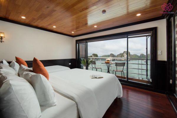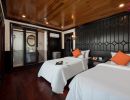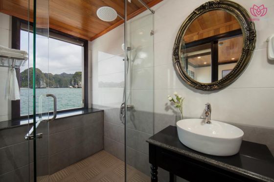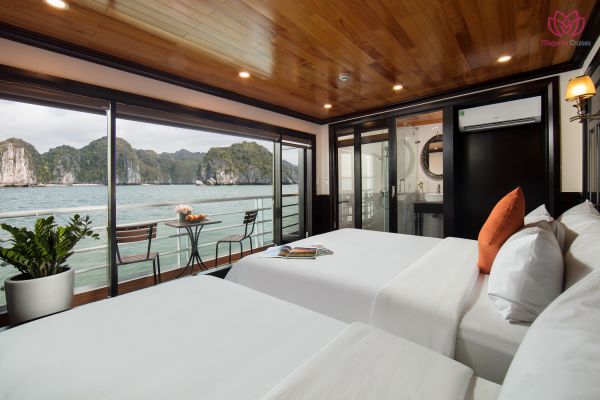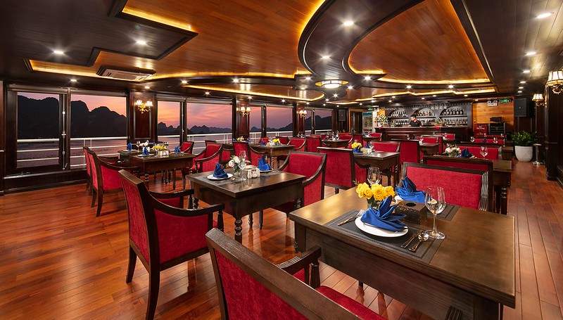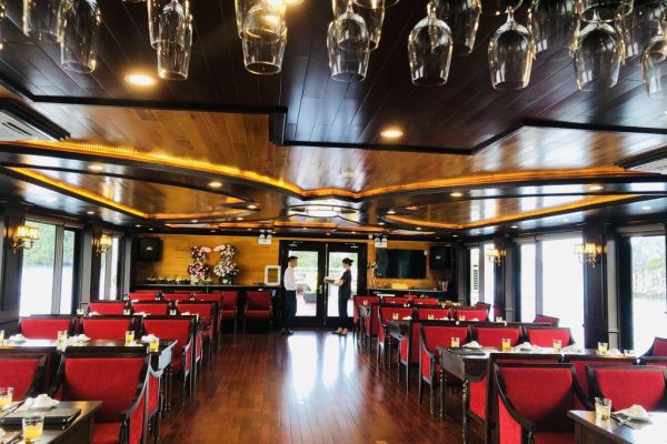 The traditional lotus image is the symbol of Magenta cruise which is combined harmoniously with both modern European architecture and mixed color scheme to make the cruise more impression on the romantic bay. With our expectation to bring the highest services and amenities to passengers, Magenta cruise – 26 cabins – is equipped air-conditioner, mini-bar, hot and cold standing bathtub with high class & fully furniture beside spa & jaccuzi service. Separated window and balcony in each room creat a cool, panoramic view overlooking the bay will surely give visitors the most comfortable and wonderful relaxing moments.