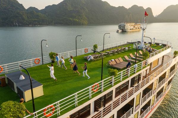 11:30 – 12:00: Arrive in Tuan Chau Wharf – transfer by small boat to Magenta Cruises