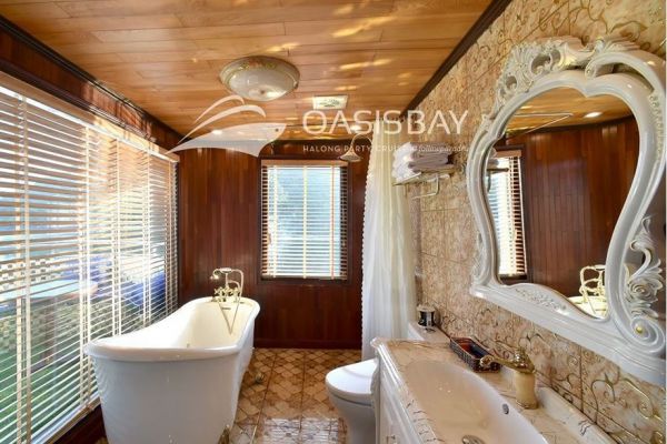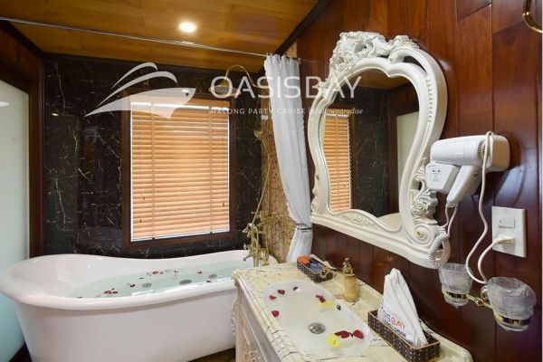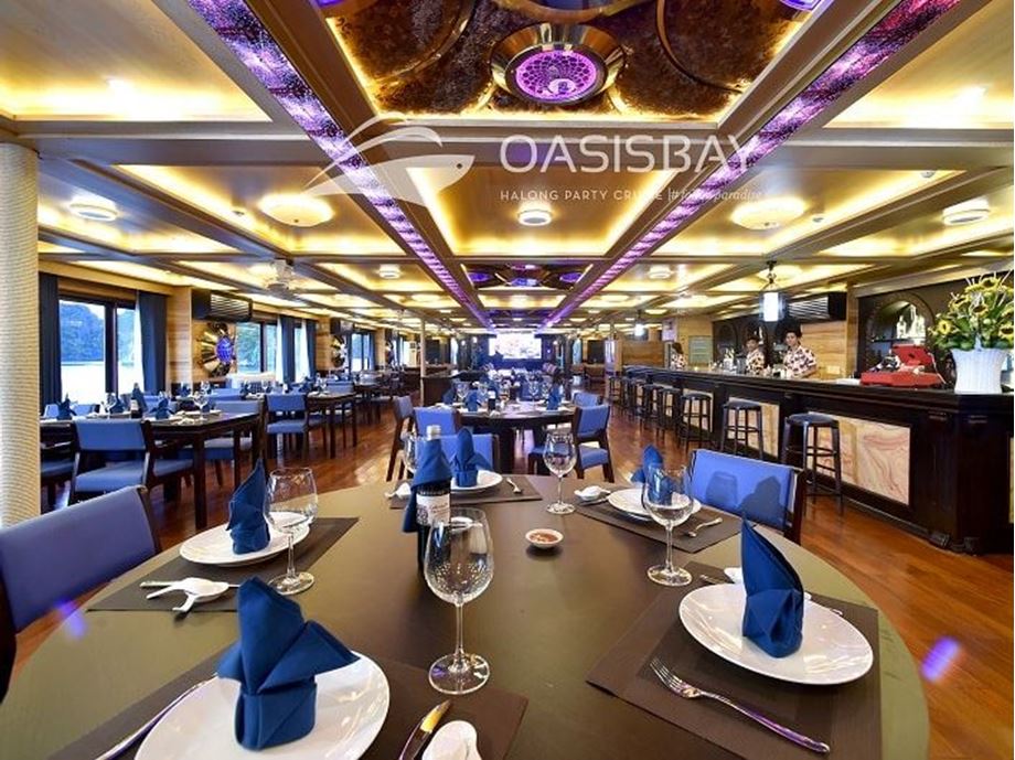 The Oasis Bay Party Cruise is a metal boat crewed by a professional, loyal and dedicated team with 40 dynamic, passionate and enthusiastic individuals who are committed to making your stay with us special and unforgettable. We proudly present one of the biggest metal boats, the Oasis Bay Party Cruise, launched in September 2017. The boat is fully equipped with the most advanced and upgraded technology. Entering the boat, you will be overwhelmed by its size and impressive features all geared towards a fun trip to Halong Bay.