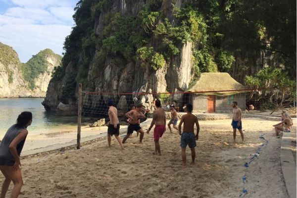 The Oasis Bay Party Cruiser is the newest edition to our fleet and is one of the largest boats in Halong Bay. We offer an amazing experience for young travellers combining the beautiful tour of Halong Bay with activities including kayaking, water trampoline, swimming, boat jumping, rock climbing, beach volleyball, beach football and much more with young travellers looking to enjoy the top 7 natural wonders of the world.