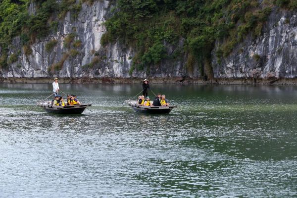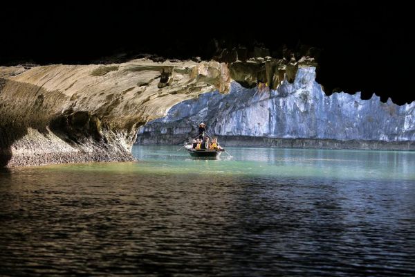 15:30 – 17:00 On a bamboo boat, visit Dark & Bright Cave, a serene round lake surrounded by lush trees and high stone cliffs. Then enjoy swimming in the private emerald water.