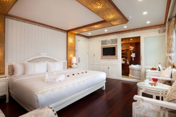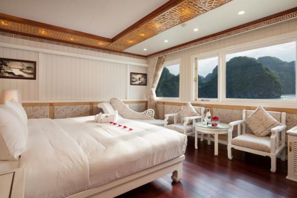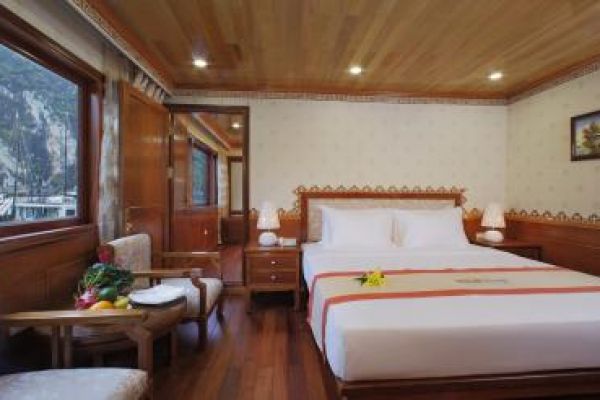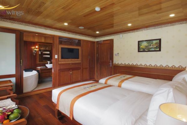 Royal Wings Cruise are owned by Tonkin Company and was opened in January 2015, this is a 5 stars cruise that visits Bai tu Long Bay. There are no balcony cabins but Royal Suite cabin of this cruise is definitely a must stay.