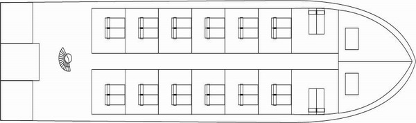 | Passenger cabins | 32 all with French balcony, floor-to-celling sliding glass doors |
