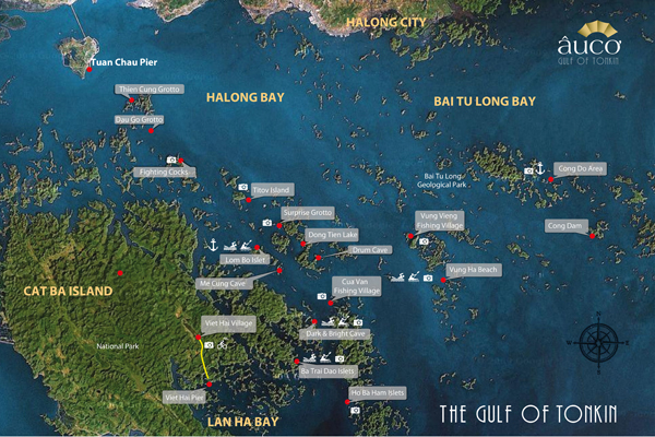 Experience the stunning sceneries of all three of the beautiful bays in the Gulf of Tonkin and explore the amazing island of Cat Ba on board The Au Co.