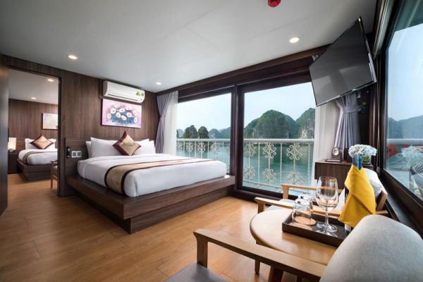 The cruise with 23 cabins, opened in 2016, renewed on 2018. You can do biking in Cat Ba island for 2 days/ 1 night.
