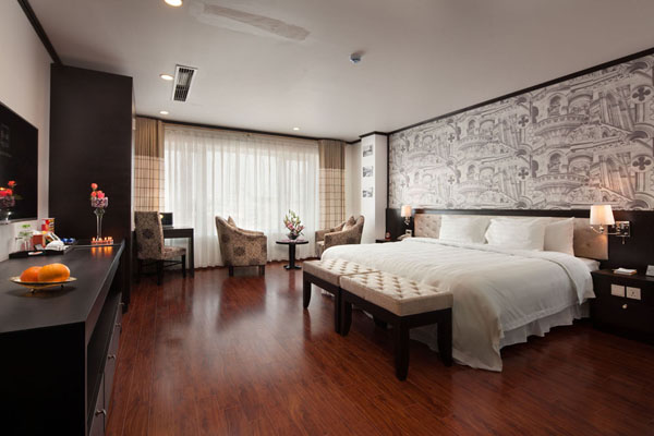 Newly open in July 2014, the Boss Legend is the only hotel located in the Old Quarter that has an authentic outdoor swimming pool. Our services include banquet for parties and meetings/events, as well as a gym, a sauna and other massage services. It is truly a first rate choice for both leisure and business travelers. Guests can enjoy its great location, exceptional service, well-appointed 80 Suites and a Presidential Suite. Our hotel provides convenient access to famous attractions such as Hoan Kiem lake, Ngoc Son Temple, Thang Long Water Puppet theatre as well as the Long Bien historical bridge or Ho Chi Minh Mausoleum.