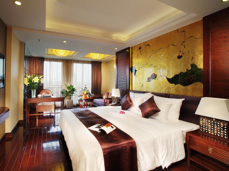 Rising over the heart of Hanoi's central old quarter and famous Silk Road, with a 3-minute walk to HoanKiem Lake, Water Puppet Theatre, St Josephs Cathedral, Night Market, Hanoi Post Office, Trang Tien Plaza shopping center etc.. The luxury and impressive designed Golden Silk Boutique Hotel features stunning views and gracious style – a remarkable luxury experience, even by Western standards with graceful Asian style. Especially, the front view rooms of the hotel with balconies, captivating vistas of Hanoi’s old quarter.