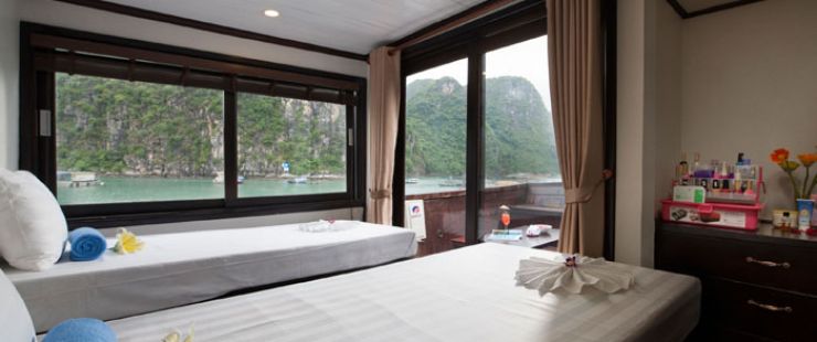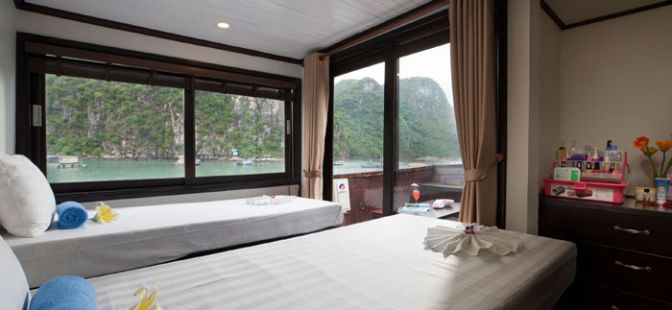 # Halong Bay Cruise: Aclass Stellar Cruise (Here is double, here is twin bed, both cabin types on 2nd floor with private balcony)
