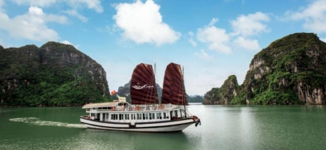 12.30: Embark Swan Day Cruise, start cruising to Bai Tu Long Bay, enjoy the beautiful limestone seascape while passing by Teapot islet, Blockhouse islet, Goat Head islet… then have lunch on board.