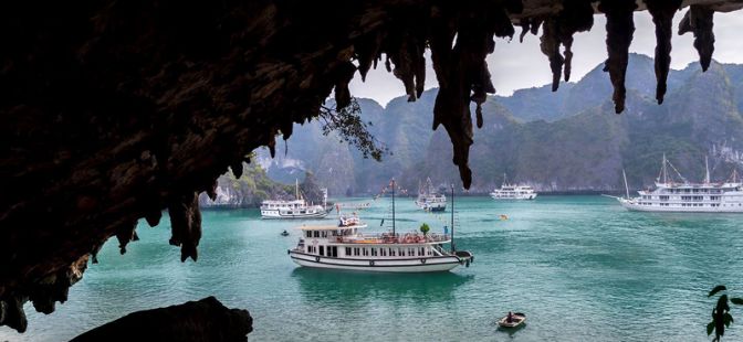 13:45 - Arrive Bo Hon archipelago, you will visit Surprising Cave to see a lot of stalagmites and stalagtiles with different shapes of sea lives, then go kayaking or bamboo boat in Luon Cave to discover the beautiful lagoon. - Visit Titov Island with sandy beach adjacent to the towering limestone mountain with excellent backdrop of the Bay, and climb up Titov Peak for a panoramic view of the bay like paradise.