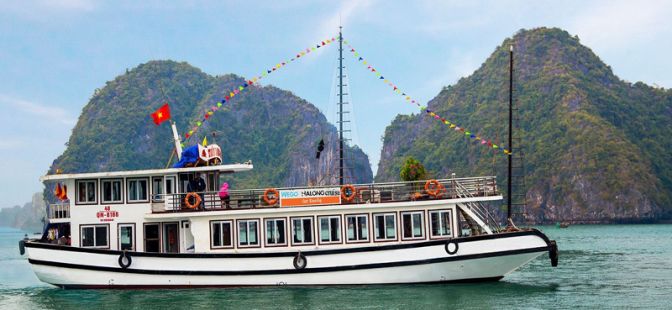 - Wego Halong will take you on an 5 hour journey via 2 day-sleeper boat cruise route which renowned for its striking, passages uninhabited islets and outcrops have been given imaginative names by the locals, due to their perceived shapes, including Cock Fighting and Thumb, while enjoy Vietnamese mouth-watering lunch on boat.