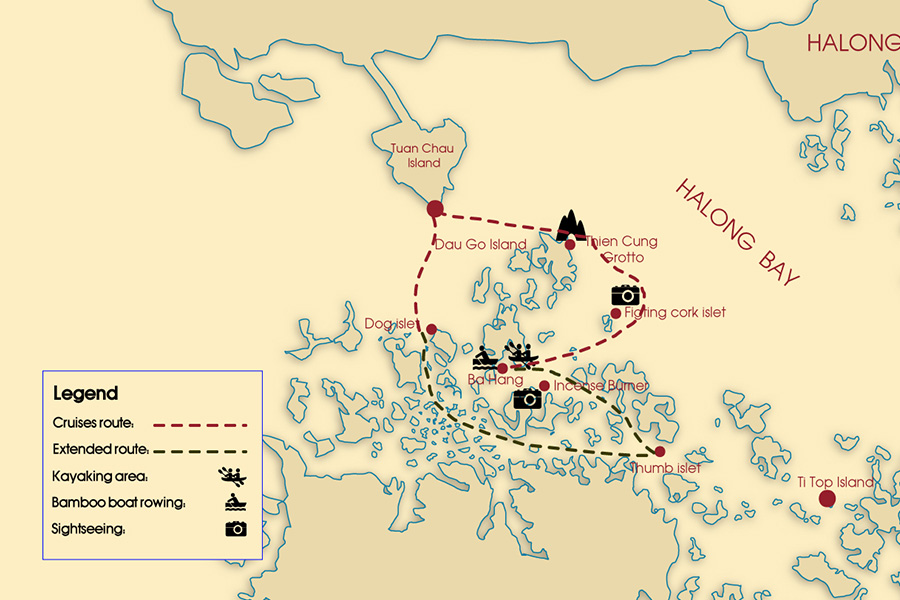 14:30: Exploring Ba Hang (Three Cave), there are options to choose either kayaking or taking a bamboo boat rowed by local people, gently glide through water tunnels into secluded sea lagoons.