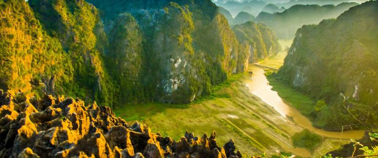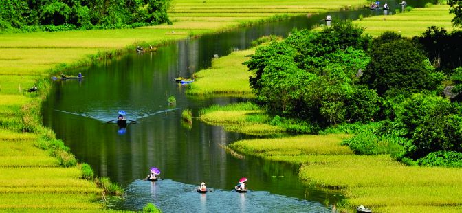 1:30 pm 5 minute-walk to the boat station and start the 2 hours -boat trip to visit Tam Coc. Known as “Halong Bay on land”, Tam Coc are three limestone caves stretching along Ngo Dong river. The boat trip is a nice journey along the river with peaceful scenery of limestone mountains, rice paddy and the site of some temples along the way from Hang Ca (first cave) to Hang Hai (second cave) and Hang Ba (third cave).