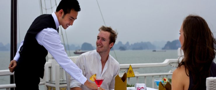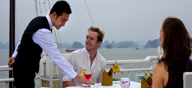 // welcome drink, tour of great caves, tour of floating village, tour of Kayaking through amazing grottoes and limestone, swimming on beautiful island.