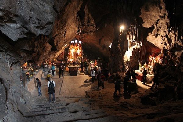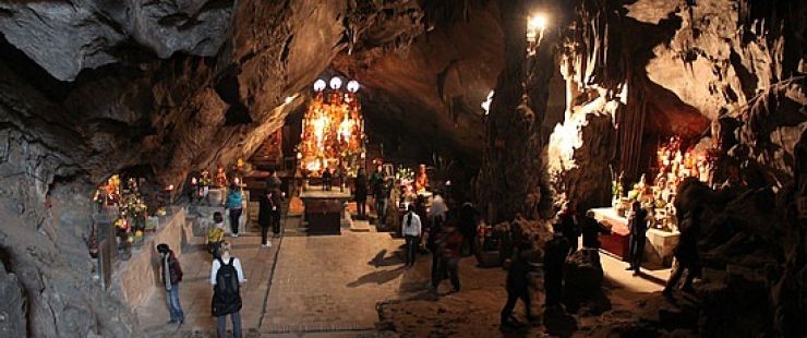 After touring the pagoda , it is a short trek to the main cave on the top of mountain and you will joy the cable car trip and see the beautiful scenery around you, where you will find a collection of holy statues and then you continue to visit Huong Tich cave.