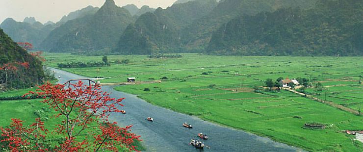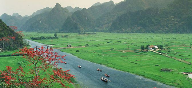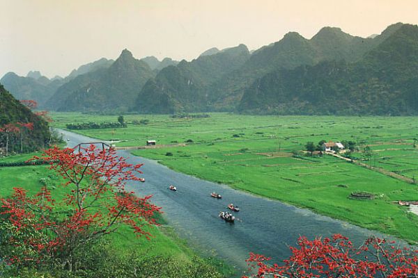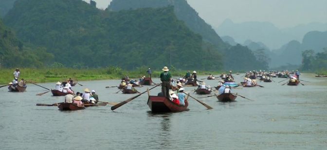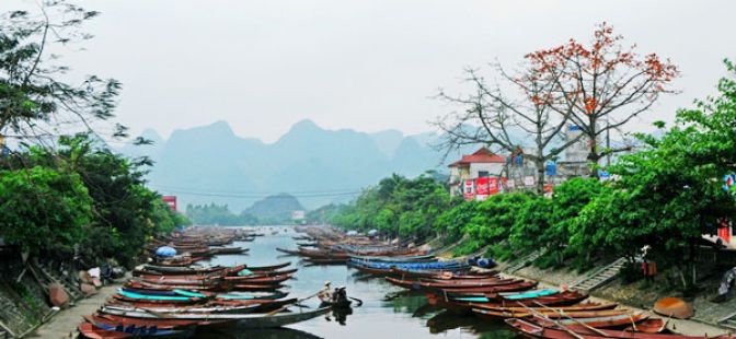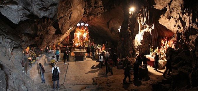 You will then depart for the Perfume Pagoda. Your car will embark on a wandering journey through rustic Vietnamese villages and rice paddies. Then, a short walk to Yen Wharf, where you will board a boat to visit the beautiful Trinh Temple. Legend has it that the site was discovered by a monk over 2000 years ago. Over the ages, many of its sister temples have been destroyed, and today only seven remain.